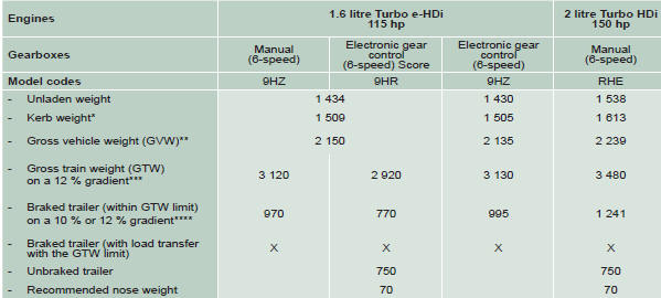 *** Exceeding the gross vehicle weight when the vehicle is towing involves a speed restriction of 50 mph (80 km/h) as defined in point 2.7 of the Directive.